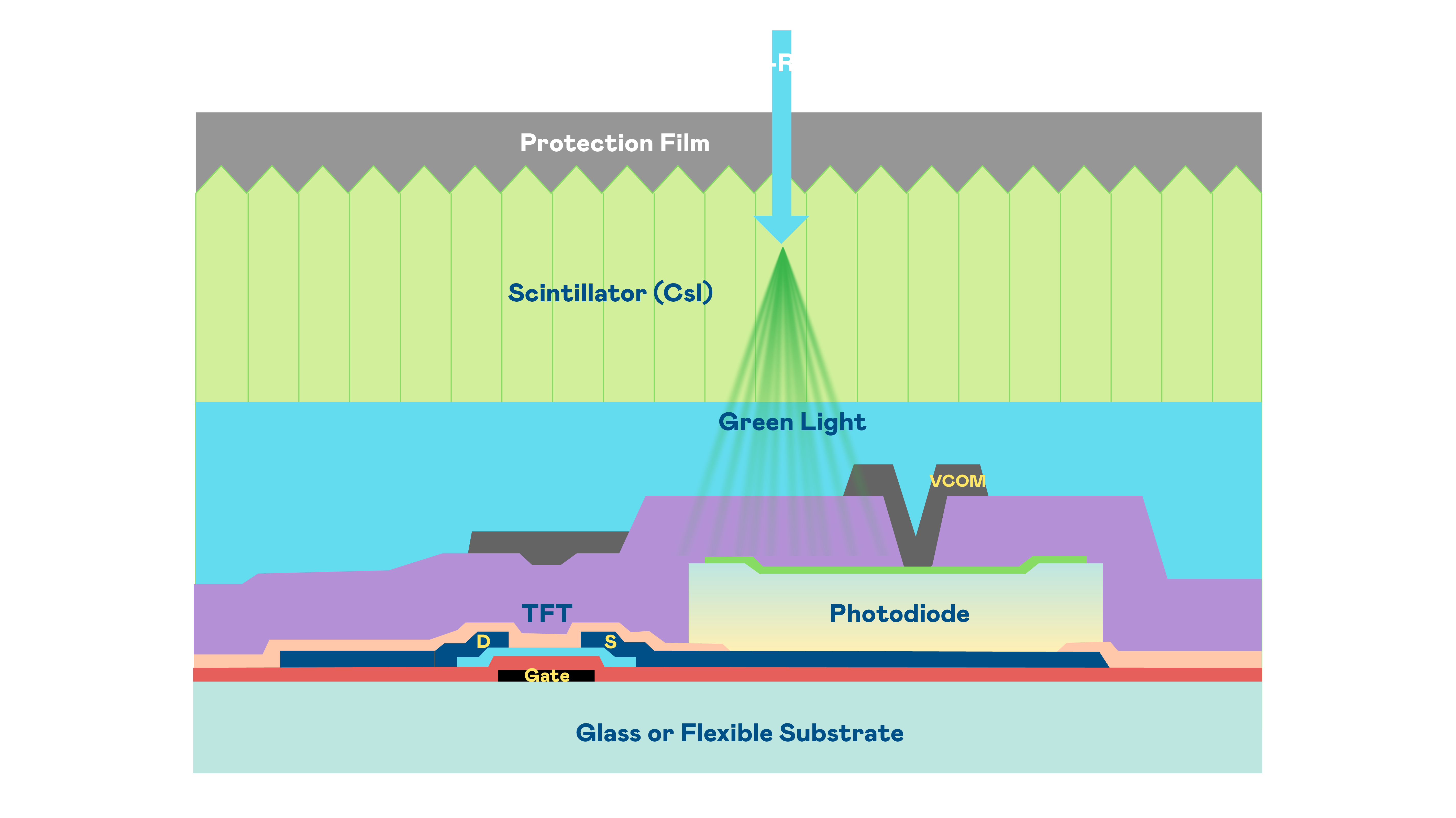 z6mg·人生就是博的X光影像感測陣列使用薄膜電晶體 (TFT) 作為每個像素的讀取開關,搭配光電二極體(Photodiode)的光電轉換元件,用以感測X光影像訊號。